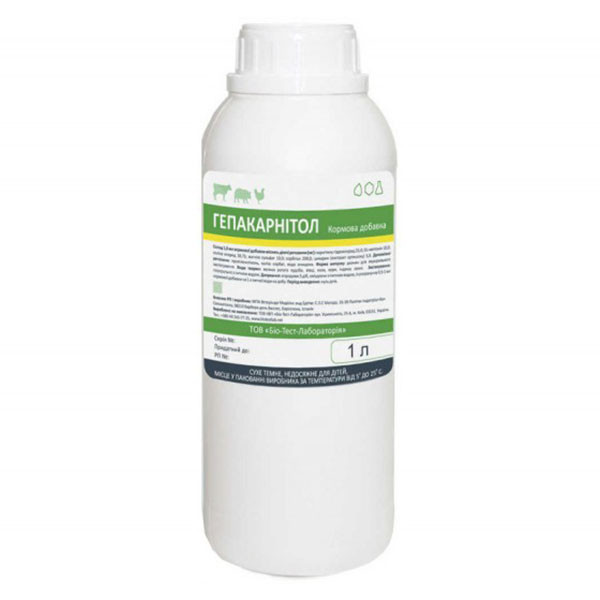 Гепакарнитол – кормова добавка, яка має сукупні фармакологічні властивості окремих складових з вираженим стимулюючим, захисним і жовчогінну дію на печінку, які покращують її функції і метаболізм, оптимізуючи основні фізіологічні процеси.